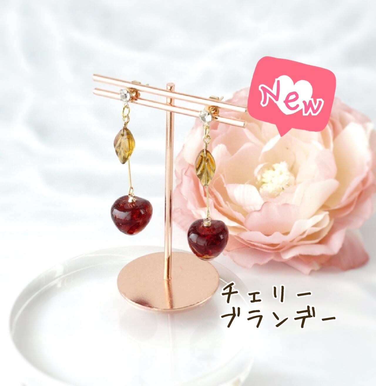 ☆秋色新色チェリーブランデー☆ 水のさくらんぼ(12カラー) ピアス&イヤリング