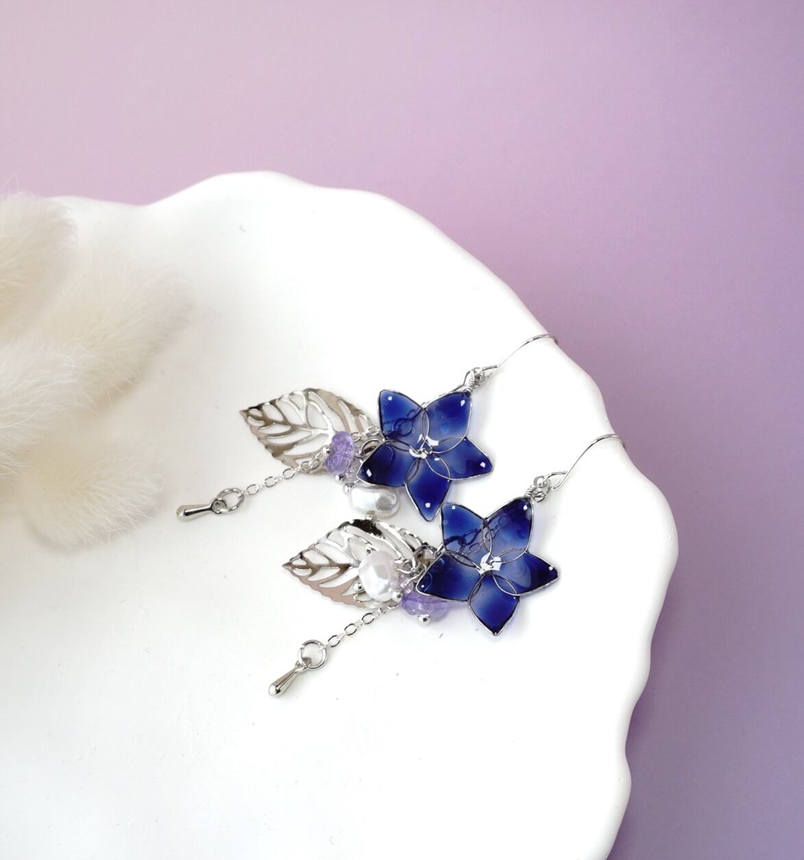 その幻想的な光景をそのままに、耳元で桔梗が美しく輝くピアスです。
