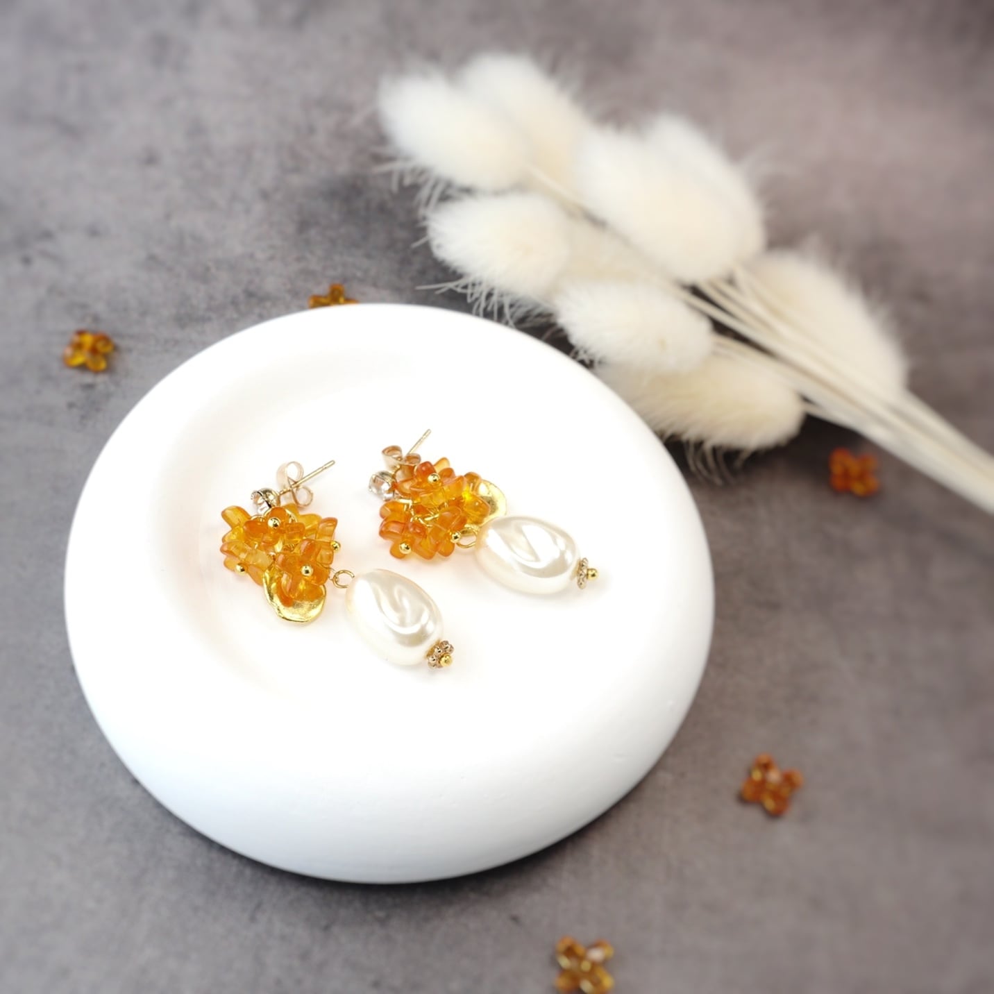 はちみつ色の金木犀ビーズと、大き目のパールビーズがまるで香水瓶のように優雅に揺れ動きます。