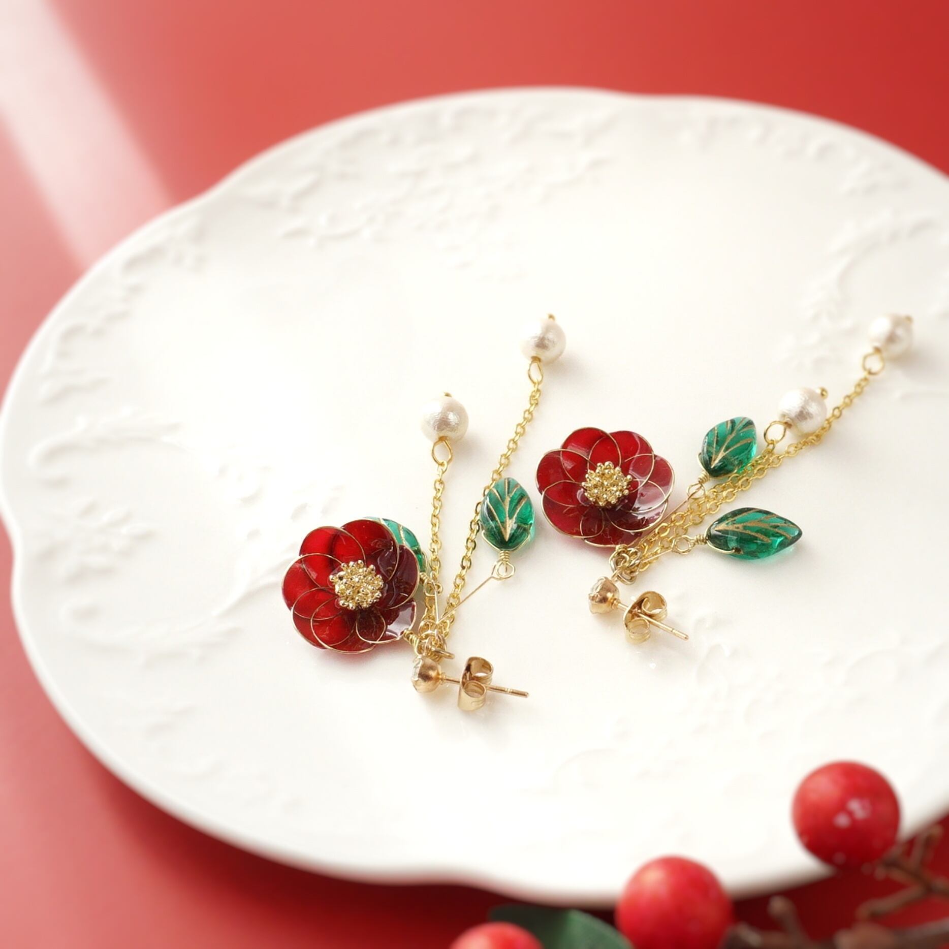乙女椿 紅(くれない)そまずの 薄化粧 ピアス&イヤリング