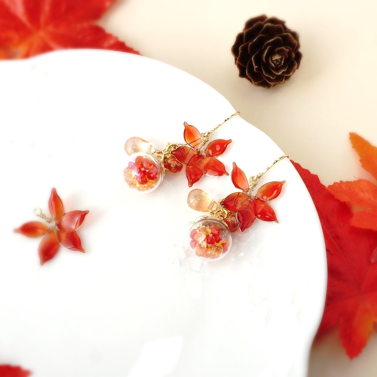 k16gp 秋の色 散りゆく椛 ピアス&イヤリング