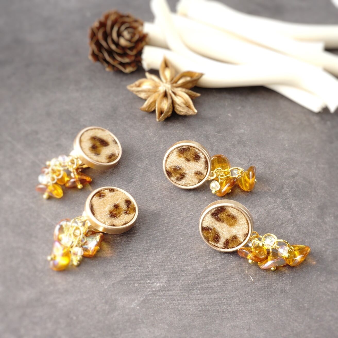 レオパードファー&琥珀色 冬 ピアス&イヤリング