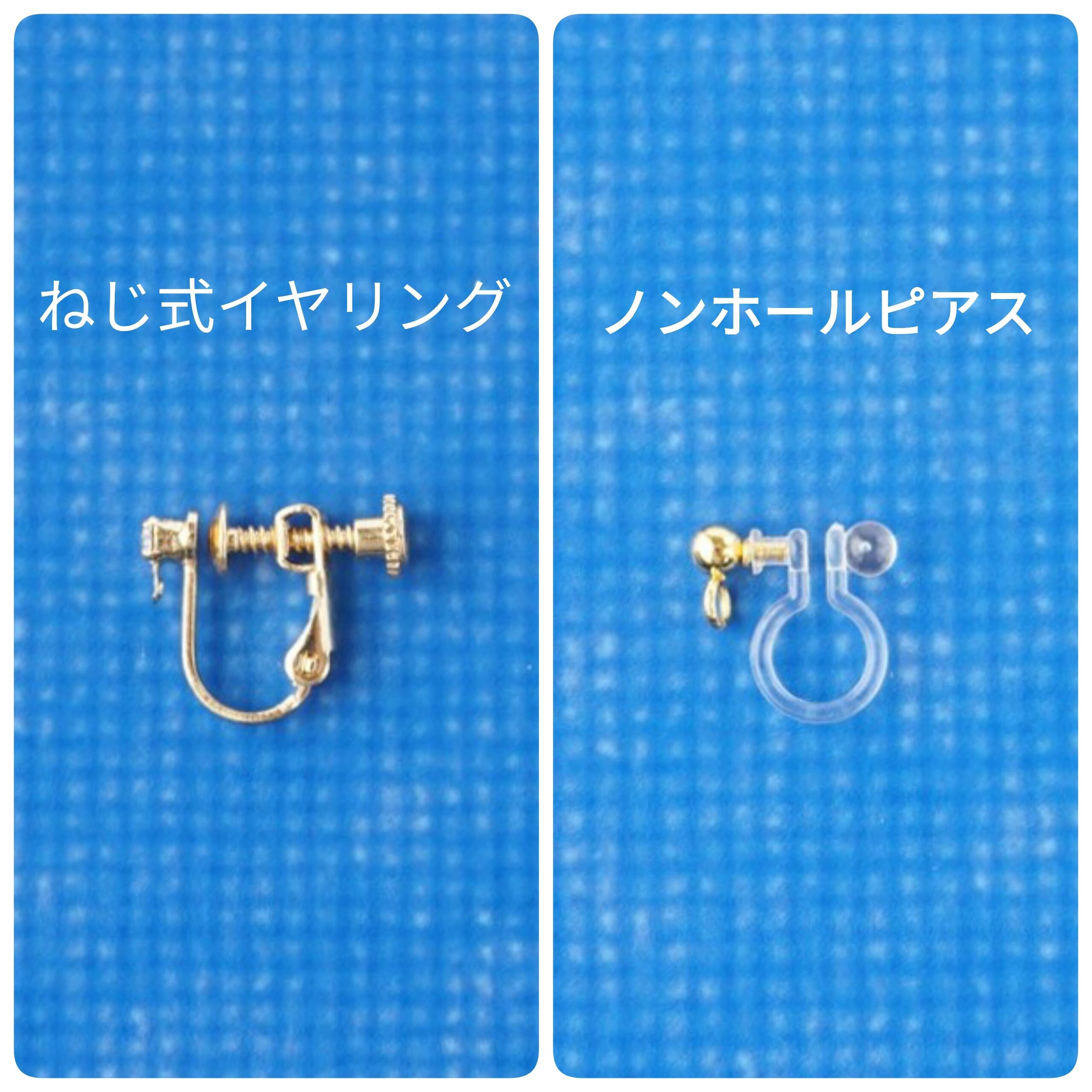 イヤリング、カン、ピンなどは通常のメッキになります。