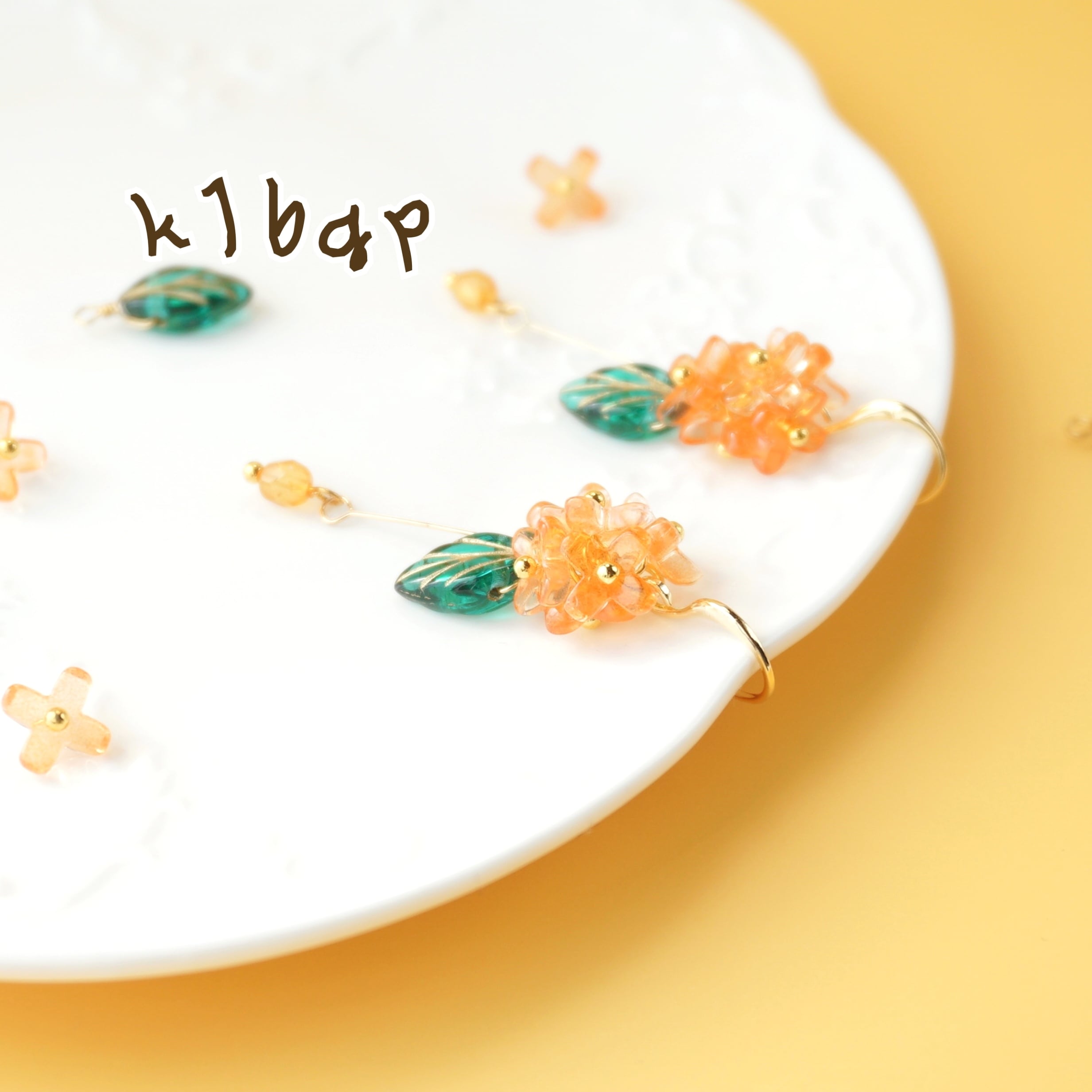 k16gpのデザインピアスを使って、金木犀のアクセサリーを作りました(*^^*)