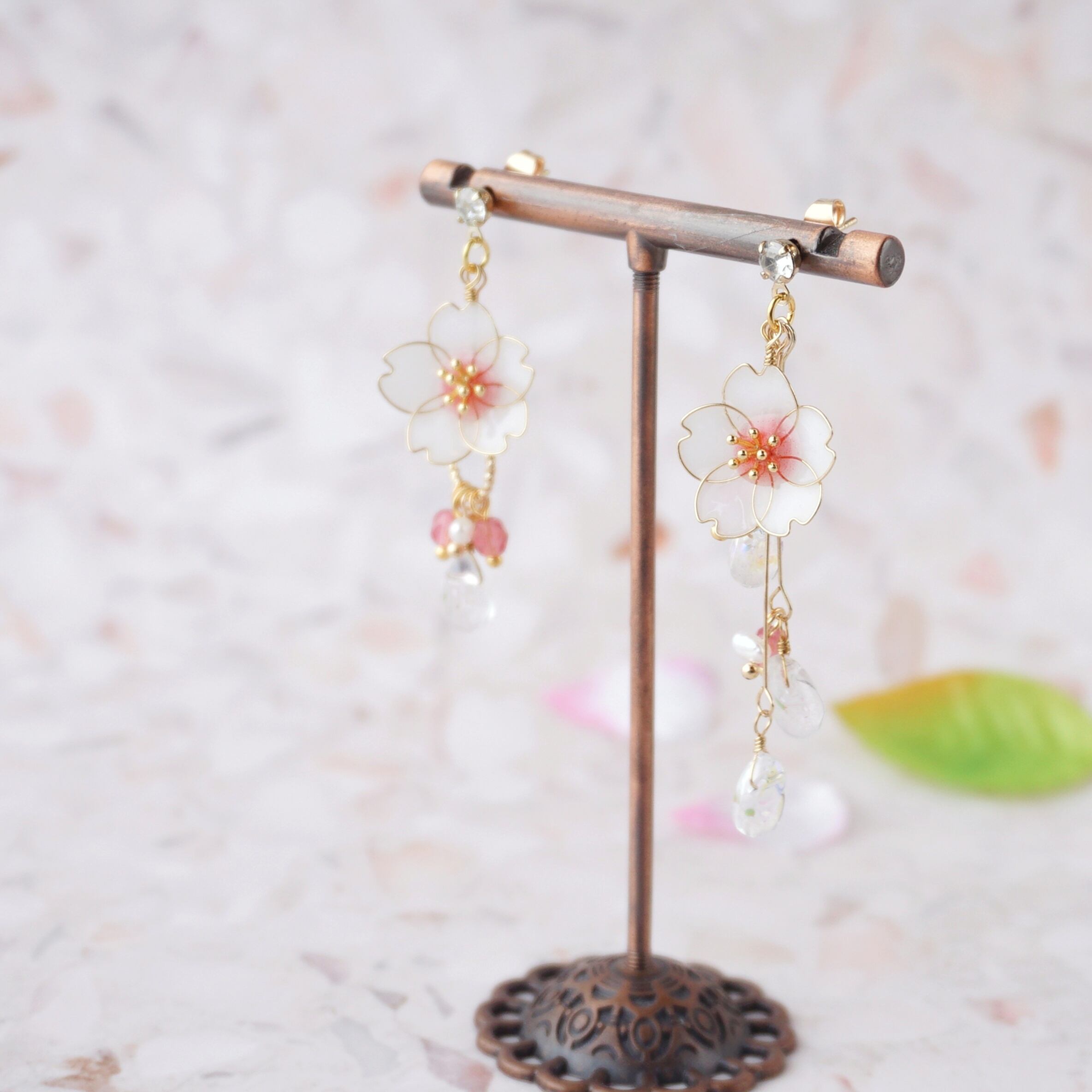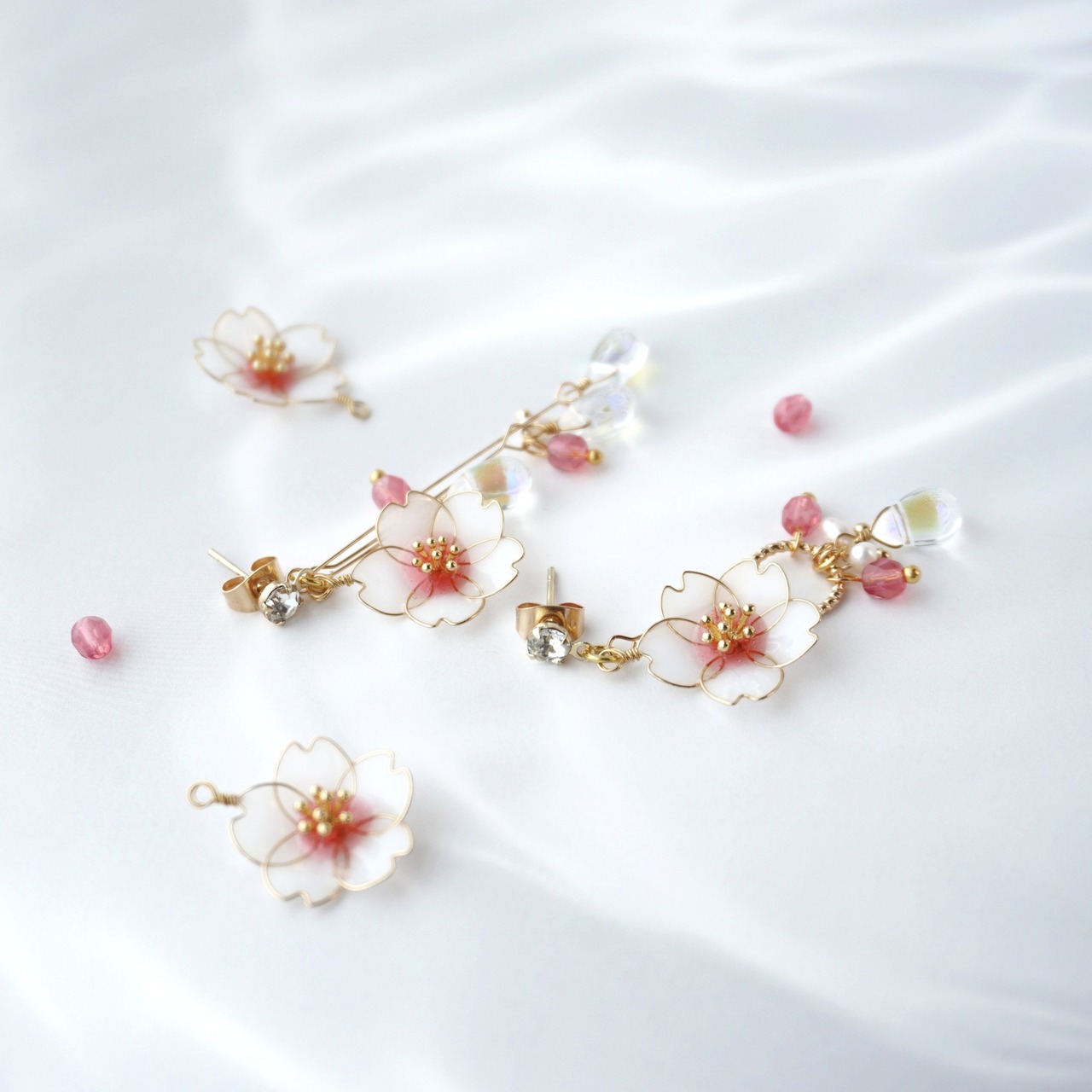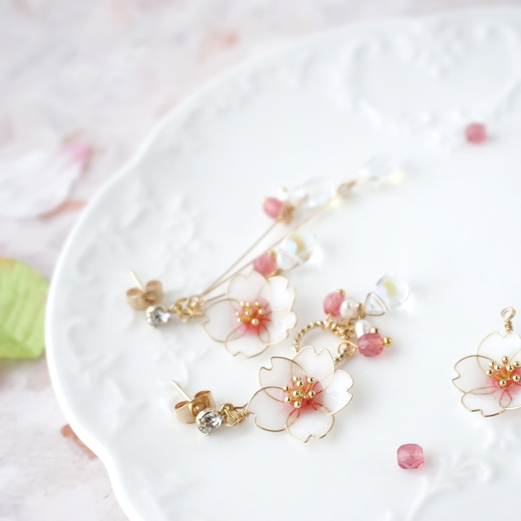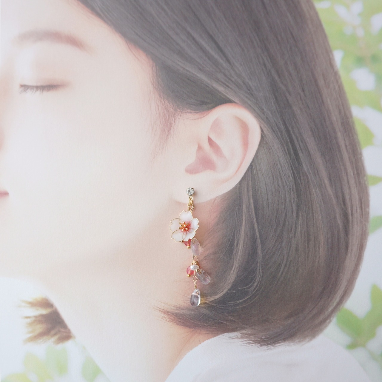 #ギフトラッピング #イヤリング #サージカルステンレス #アレルギー対応 #樹脂ノンホールピアス #ノンホールピアス #パーツ変更 #春 #ロングピアス #揺れる #春色 #ボタニカル #雪 #雪解け水 #さくら #桜 #寒桜 #薄紅色 #ピンク #桃色 #ガラスビーズ #オーロラ #白 #ホワイト #淡水パール #お花見 #成人式 #レジン #大ぶり #桜色 #ディップフラワー #フラワー 和装 和服 着物 正月 初詣