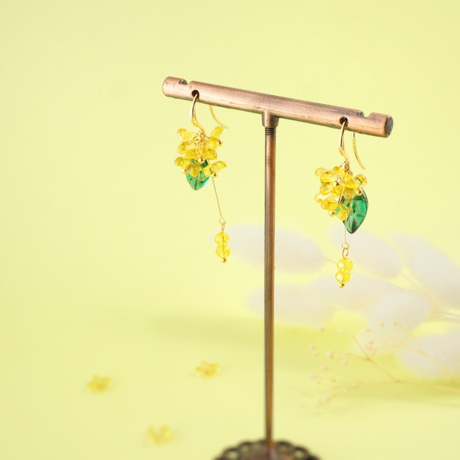 k16gpのデザインピアスを使って、菜の花のアクセサリーを作りました(*^^*)