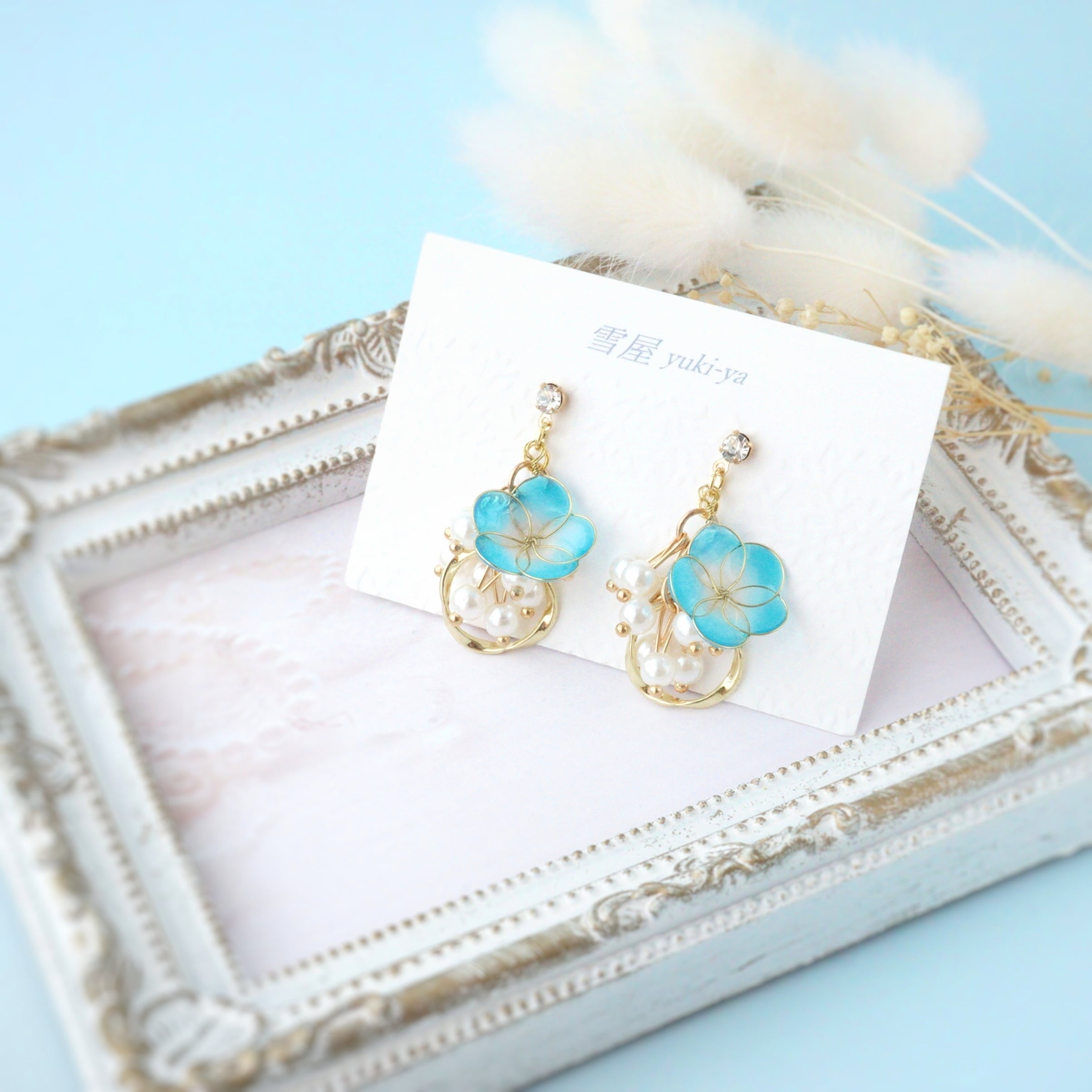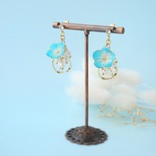 イヤリング アレルギー対応 ノンホールピアス サージカルステンレス ギフトボックス ギフトラッピング 無料ラッピング オールシーズン 春 春物 スプリング ネモフィラ レジン ブルー 水色 青 ゴールド フラワー ディップフラワー 上品 勿忘草