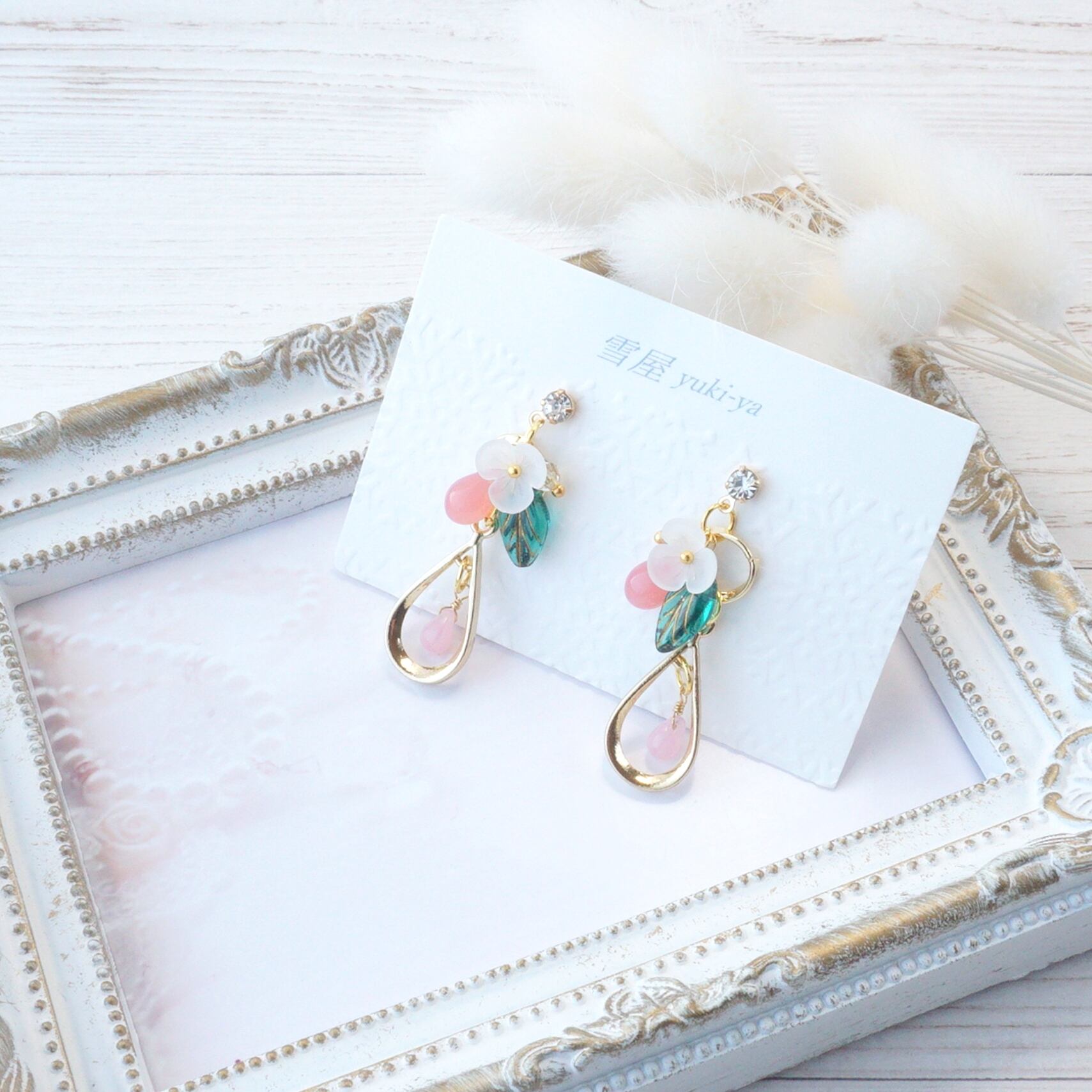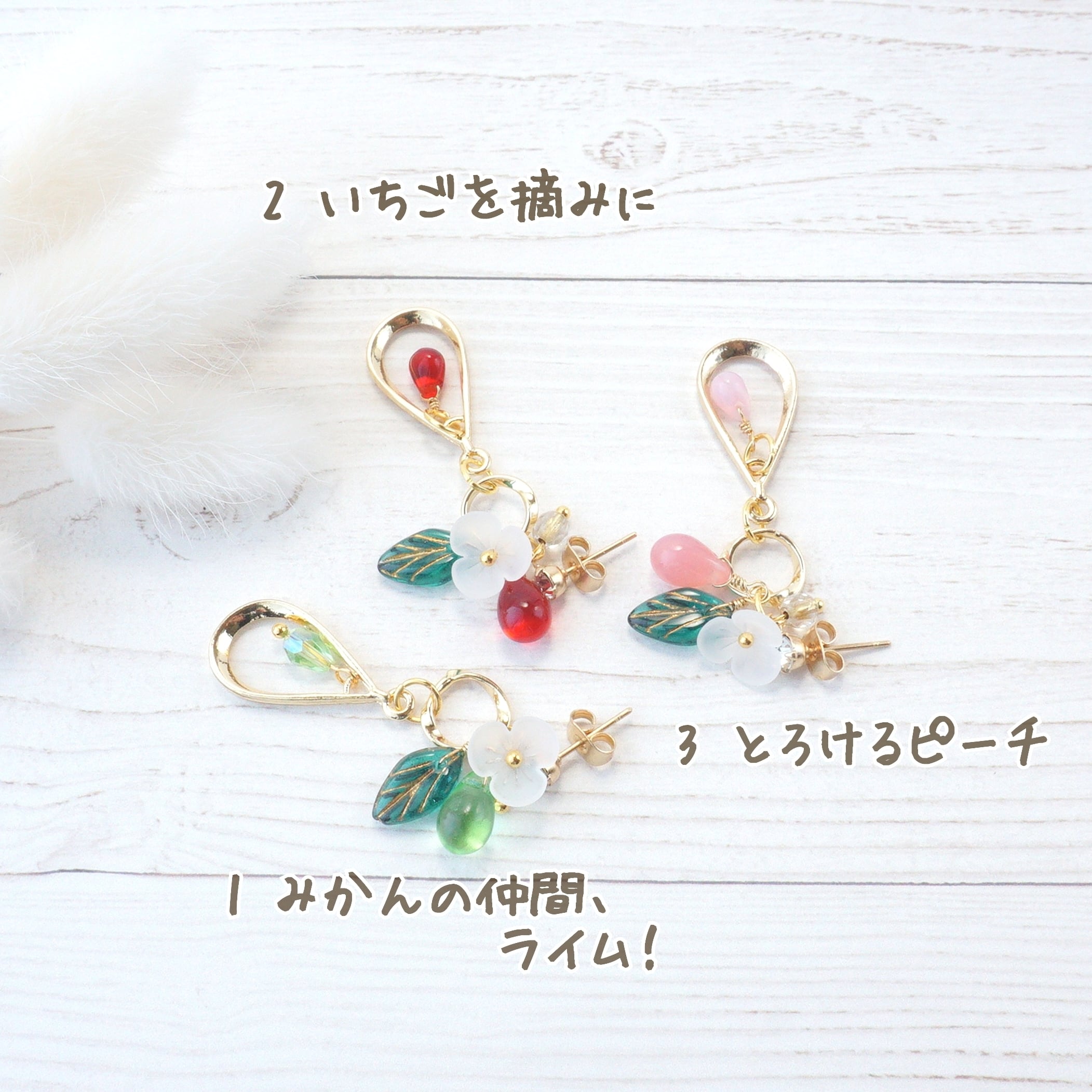 イヤリング アレルギー対応 サージカルステンレス ノンホールピアス ギフトラッピング 無料ラッピング オールシーズン 春 春物 スプリング 梅雨 夏 夏物 初夏 ガラスビーズ 母の日 しずく ピーチ 桃 オレンジ レモン モヒート フルーツ 果物 フラワー 花 いちご 苺 ストロベリー ベリー レッド ピンク 色違い ライム ビタミンカラー グリーン 小花 爽やか