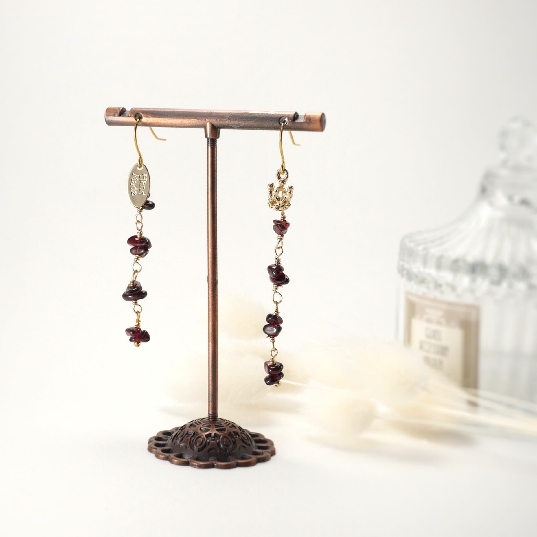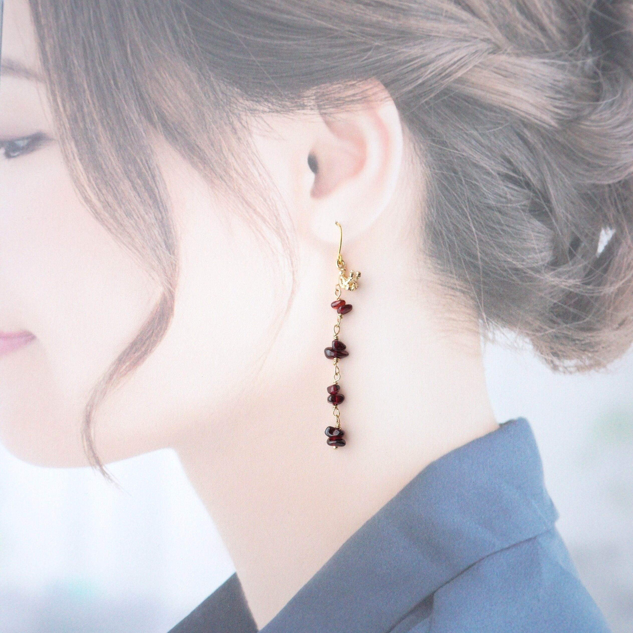 ガーネットと王冠 ピアス&イヤリング