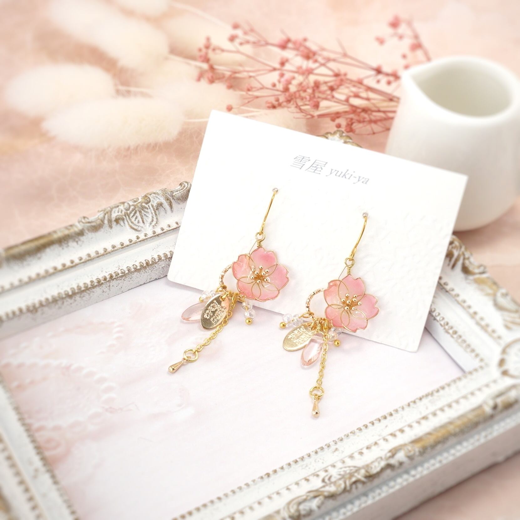 イヤリング アレルギー対応 ノンホールピアス サージカルステンレス ギフトボックス ギフトラッピング 無料ラッピング ギフト ディップフラワー レジン ワイヤーフラワー 花 春物 半透明 揺れる 華やか 上品 成人式 卒業式 和服 和装 着物 桜 ピンク フラワー 花 さくら メタル