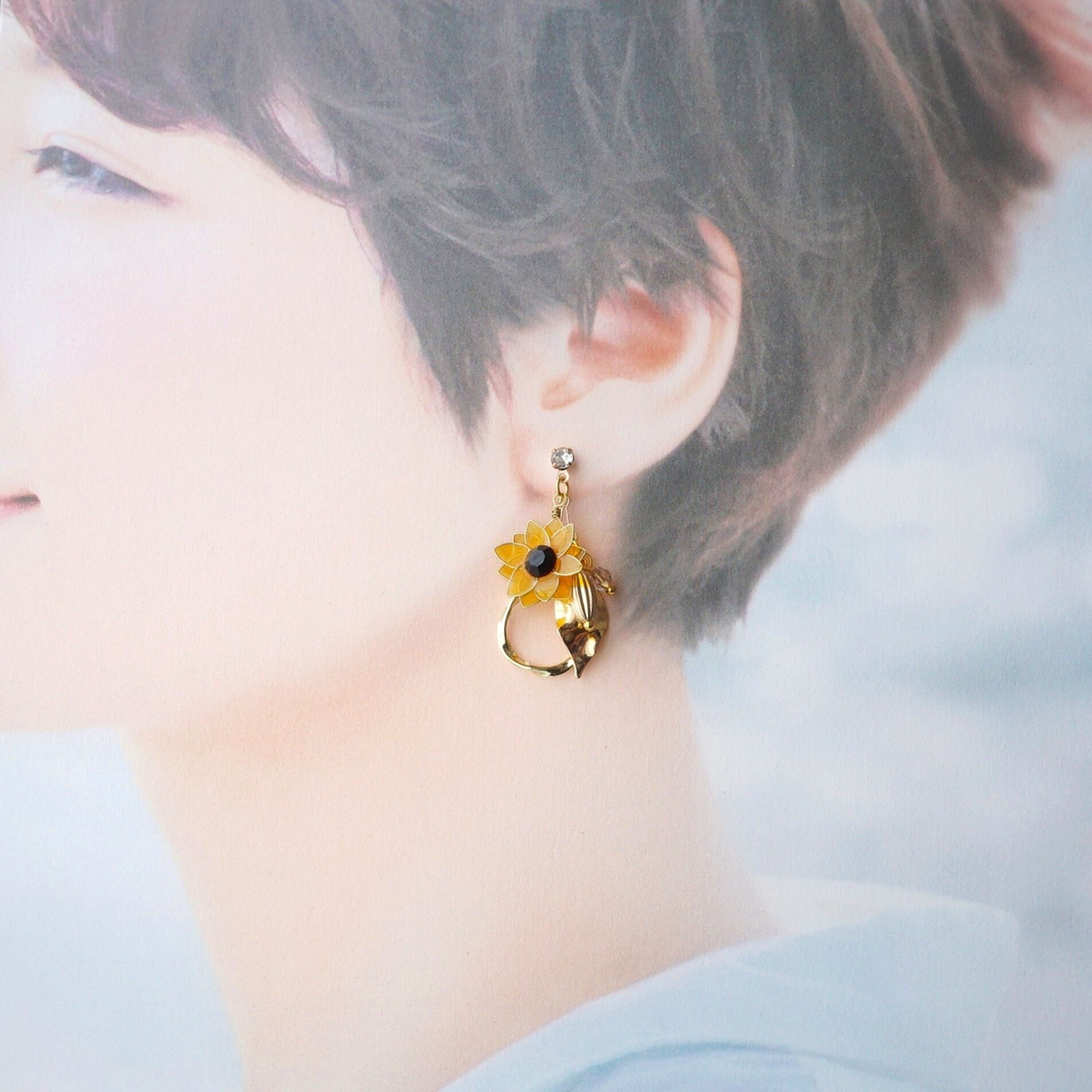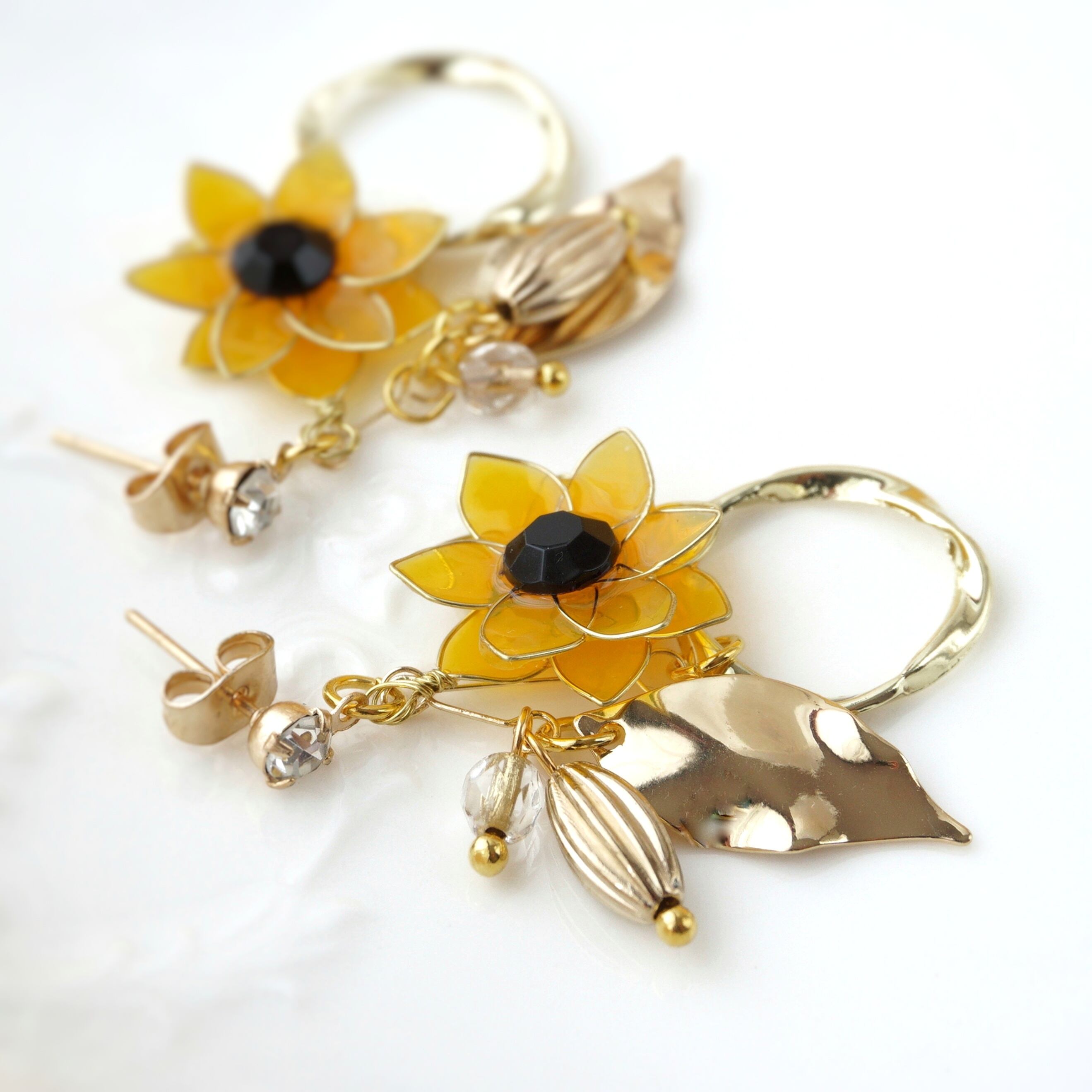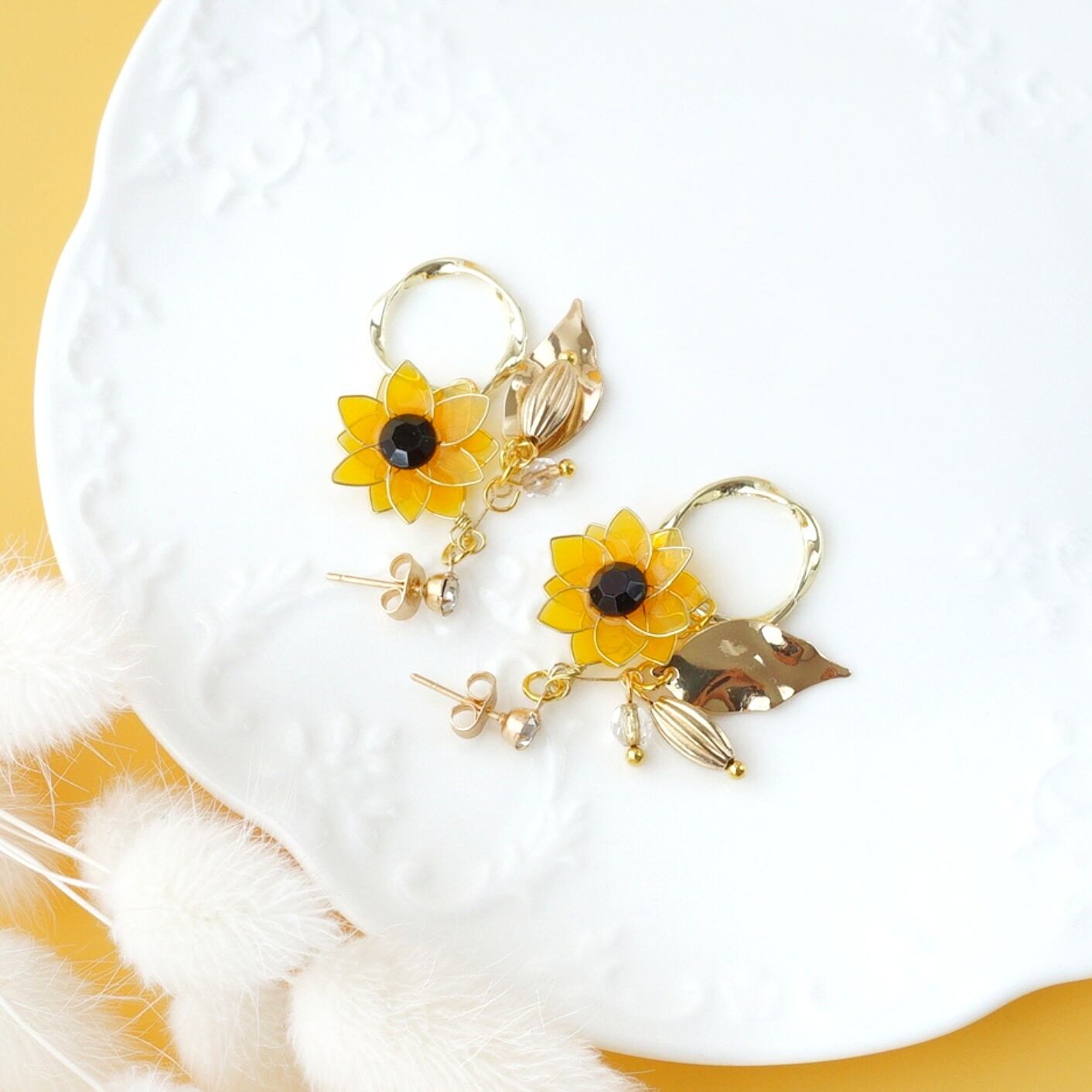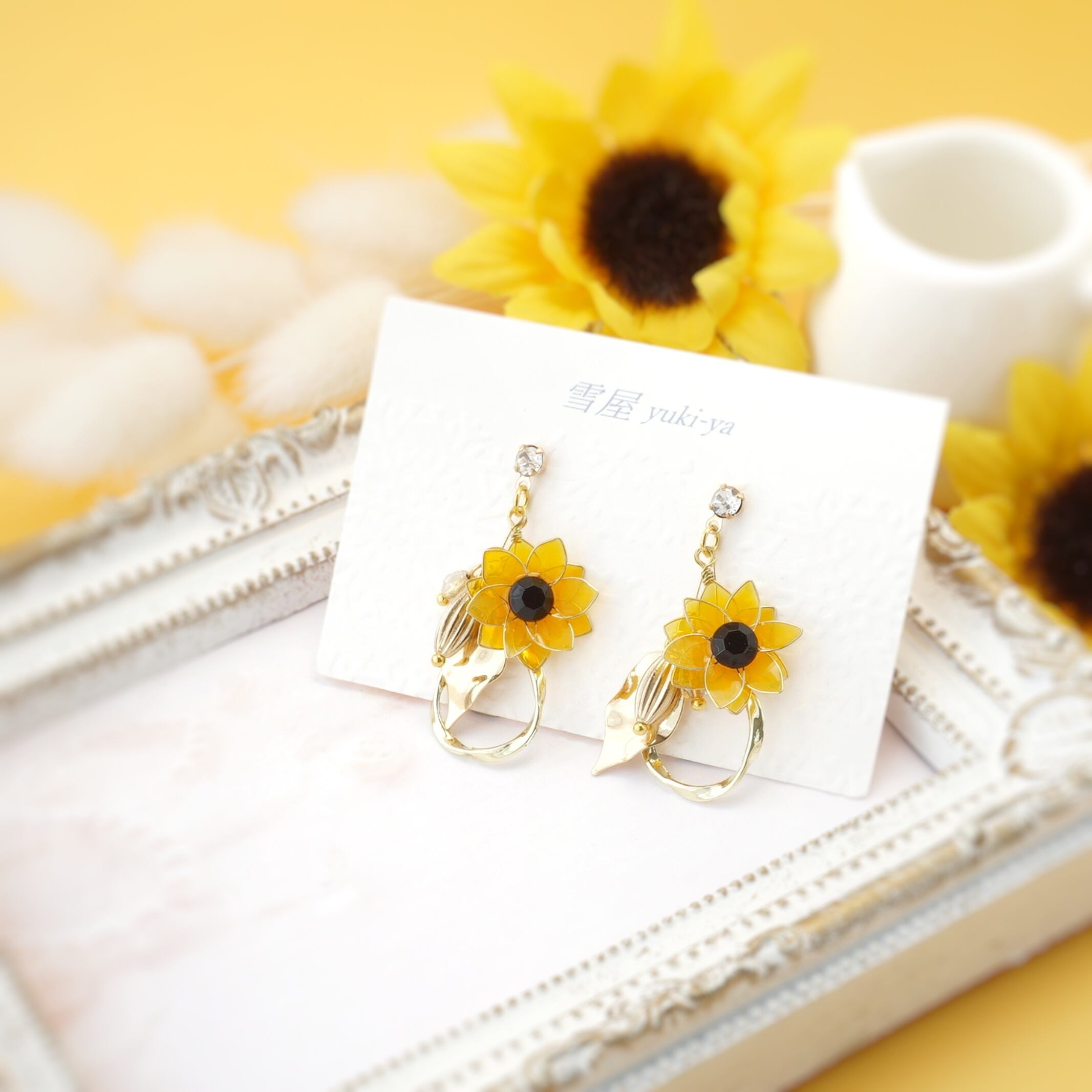 #イヤリング #ノンホールピアス #サージカルステンレス #ギフトボックス #ギフトラッピング #無料ラッピング #ギフト #レジン #ディップフラワー #花 #フラワー #SNS映え #大人可愛い #可愛い #夏物 #夏 #イエロー #黄色 #南の島 #リゾート #ひまわり #メタル #クリア