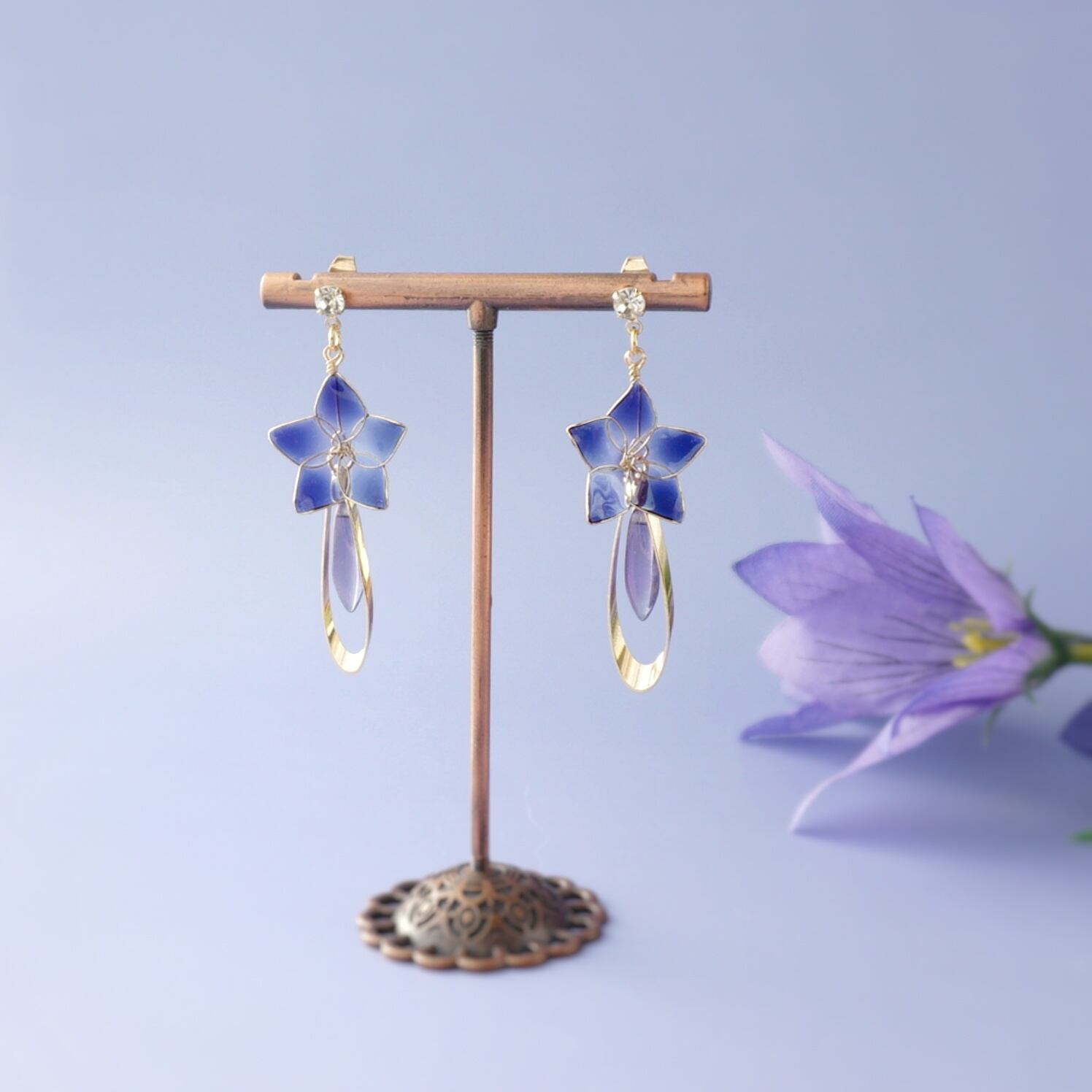 桔梗とガラスのグラデーション ピアス&イヤリング