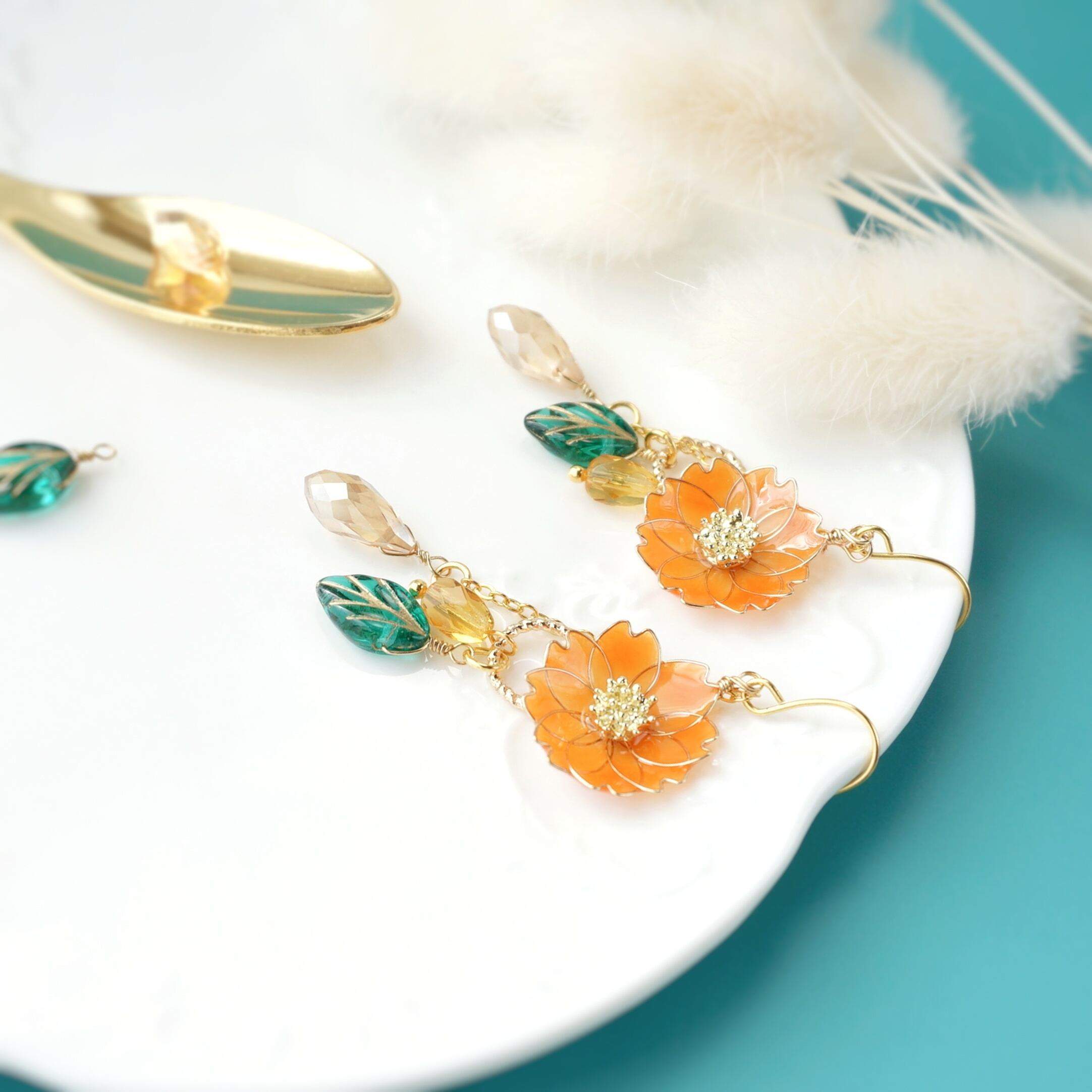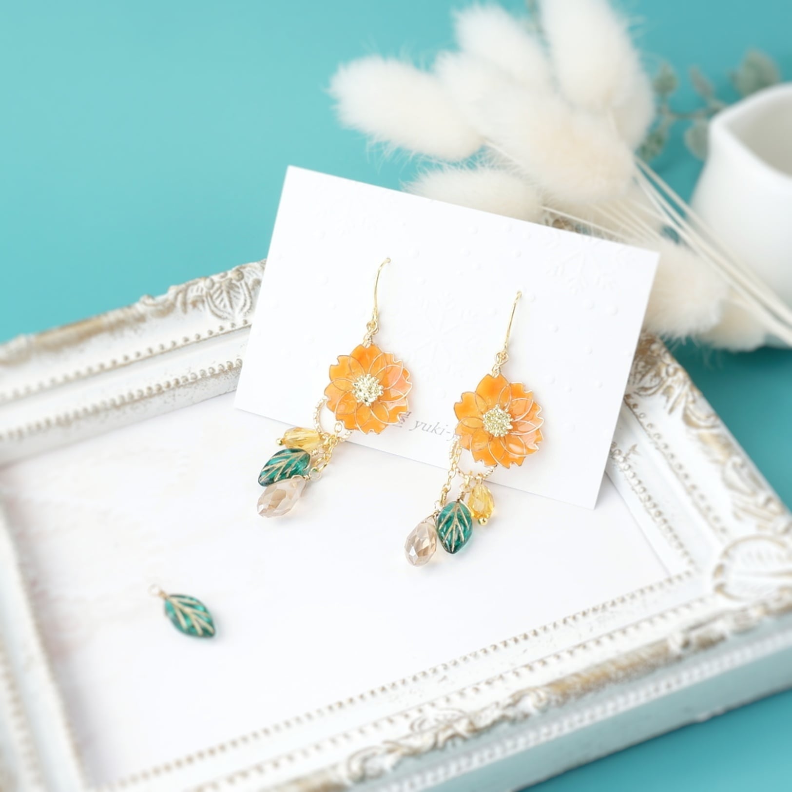 #イヤリング #アレルギー対応 #ノンホールピアス #サージカルステンレス #ギフトボックス #ギフトラッピング #無料ラッピング #オールシーズン #秋 #秋色 #ディップフラワー #フラワー #揺れる #チェーン #クリア #和装 #浴衣 #コスモス #キバナコスモス #オレンジ #橙色 #金運アップ #イエベ秋 #風水