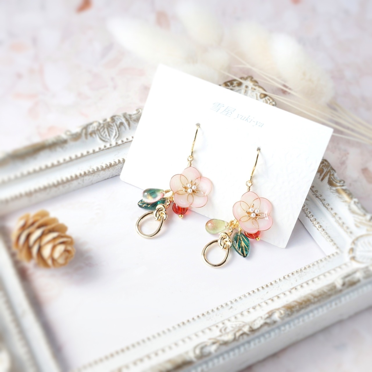 #イヤリング #アレルギー対応 #ノンホールピアス #ギフトボックス #ギフトラッピング #無料ラッピング #オールシーズン #ディップフラワー #フラワー #揺れる #k16gp #クリスマス #ラッピング #記念日 #記念撮影 #七五三 #入学式 #卒業式 #和装 #りんご #林檎 #林檎の花 #フラワー #フルーツ #ガラスビーズ #ホワイト #クリスマス #デザインピアス