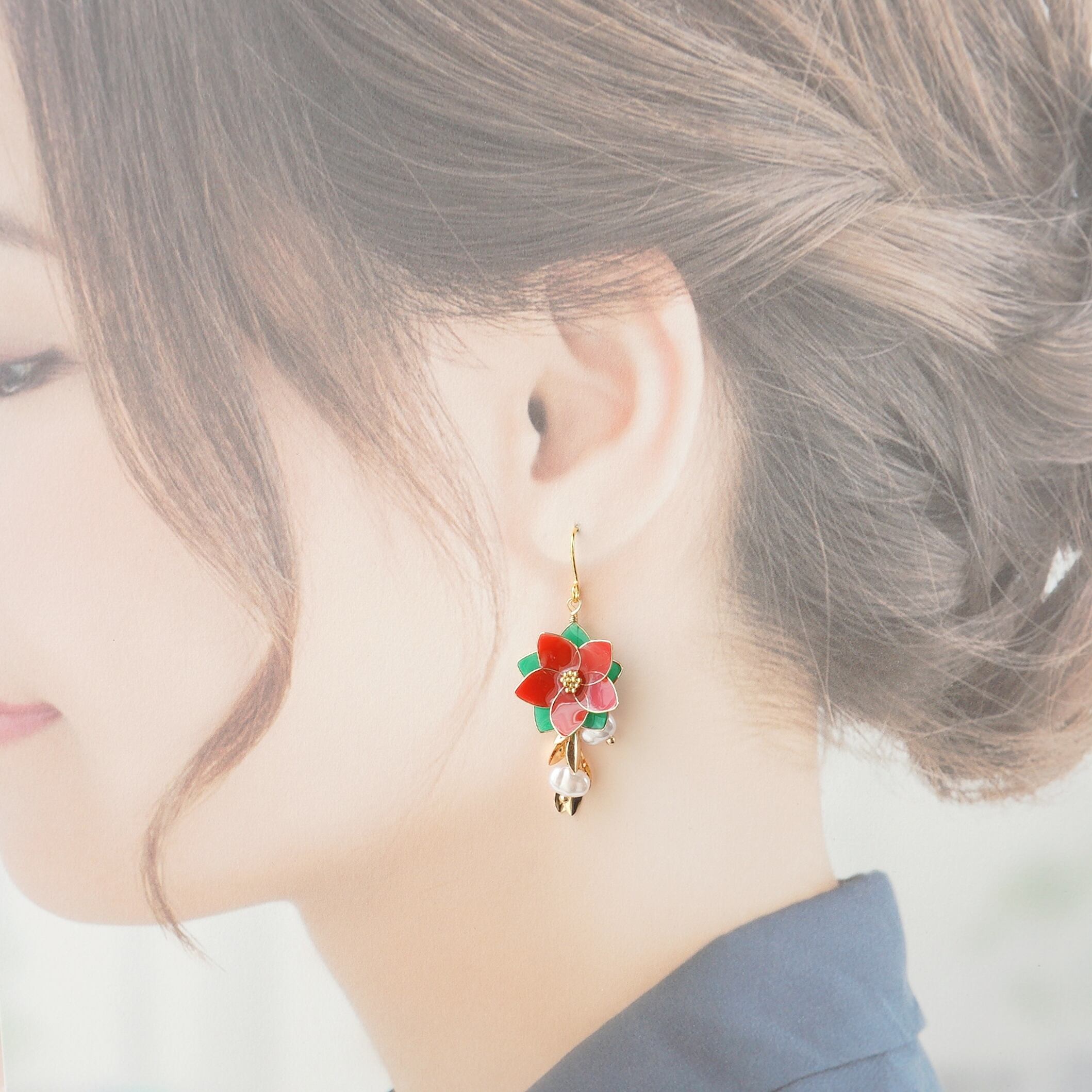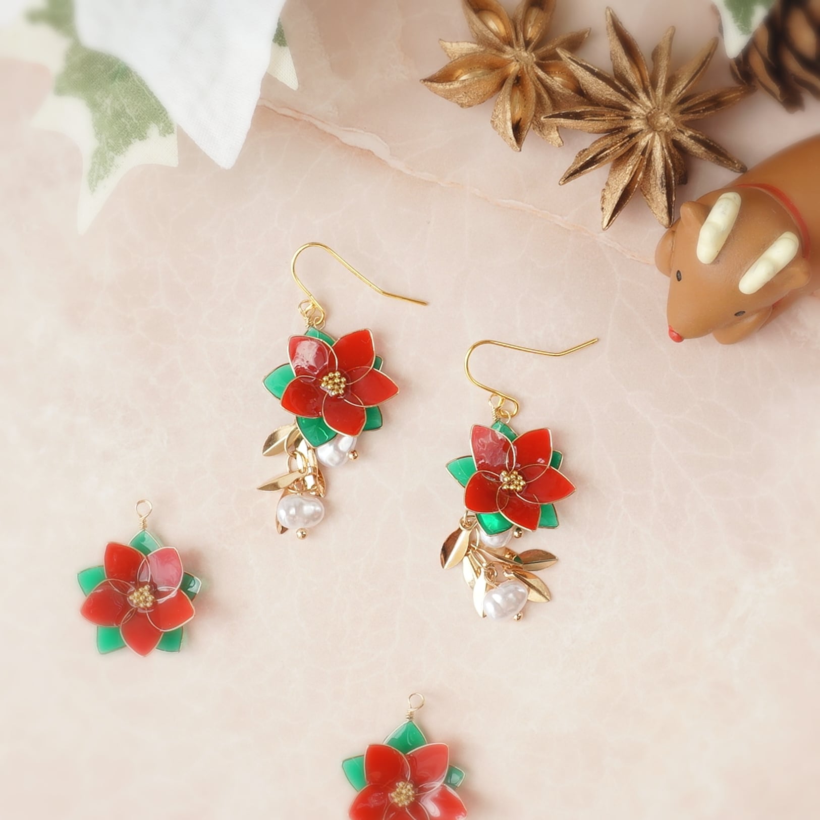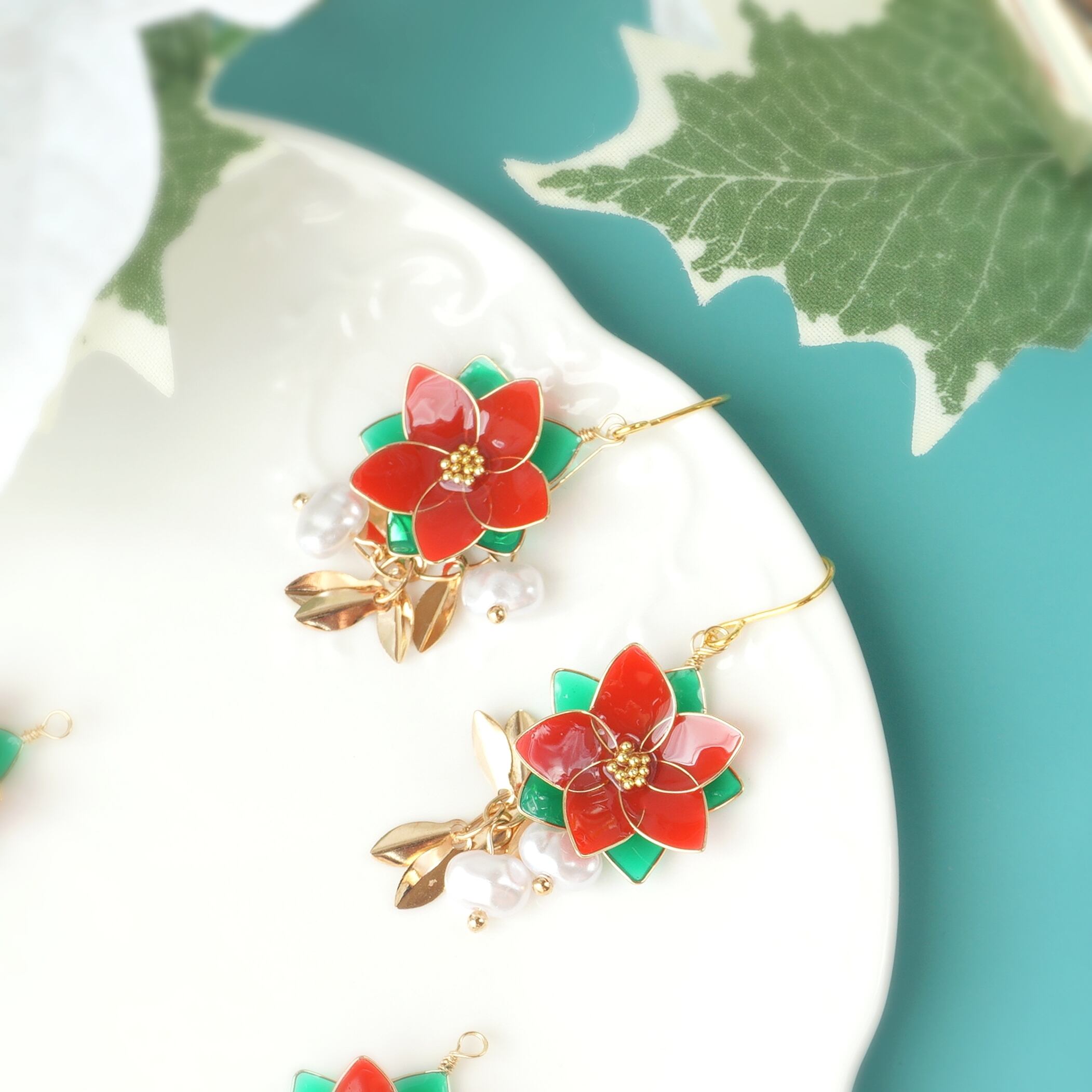 #イヤリング #アレルギー対応 #ノンホールピアス #サージカルステンレス #ギフトボックス #ギフトラッピング #無料ラッピング #オールシーズン #ディップフラワー #フラワー #揺れる #クリスマス #ラッピング #ポインセチア #聖夜 #赤 #レッド #緑 #グリーン #SNS映え
