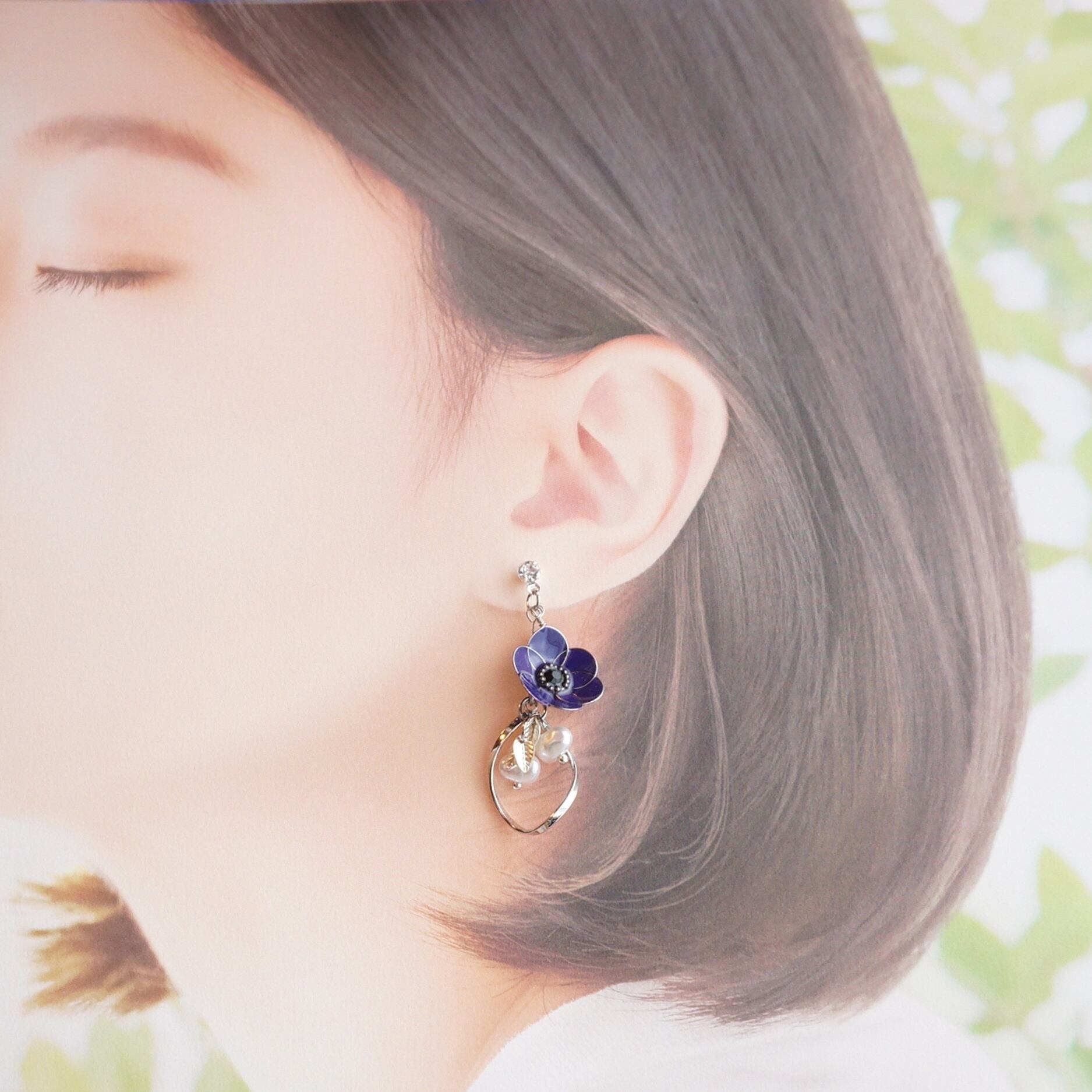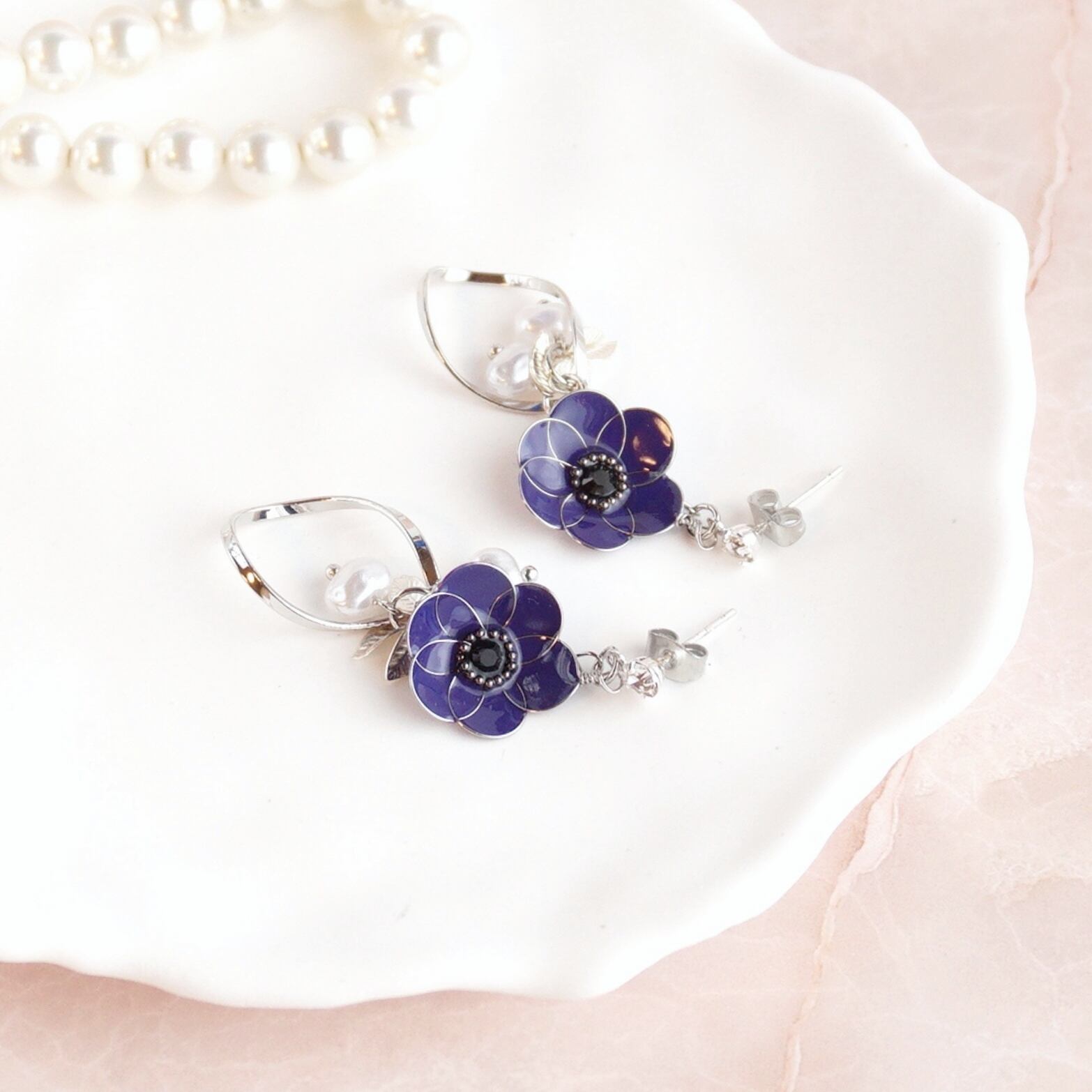 「風の花」アネモネ(パープル) ピアス&イヤリング