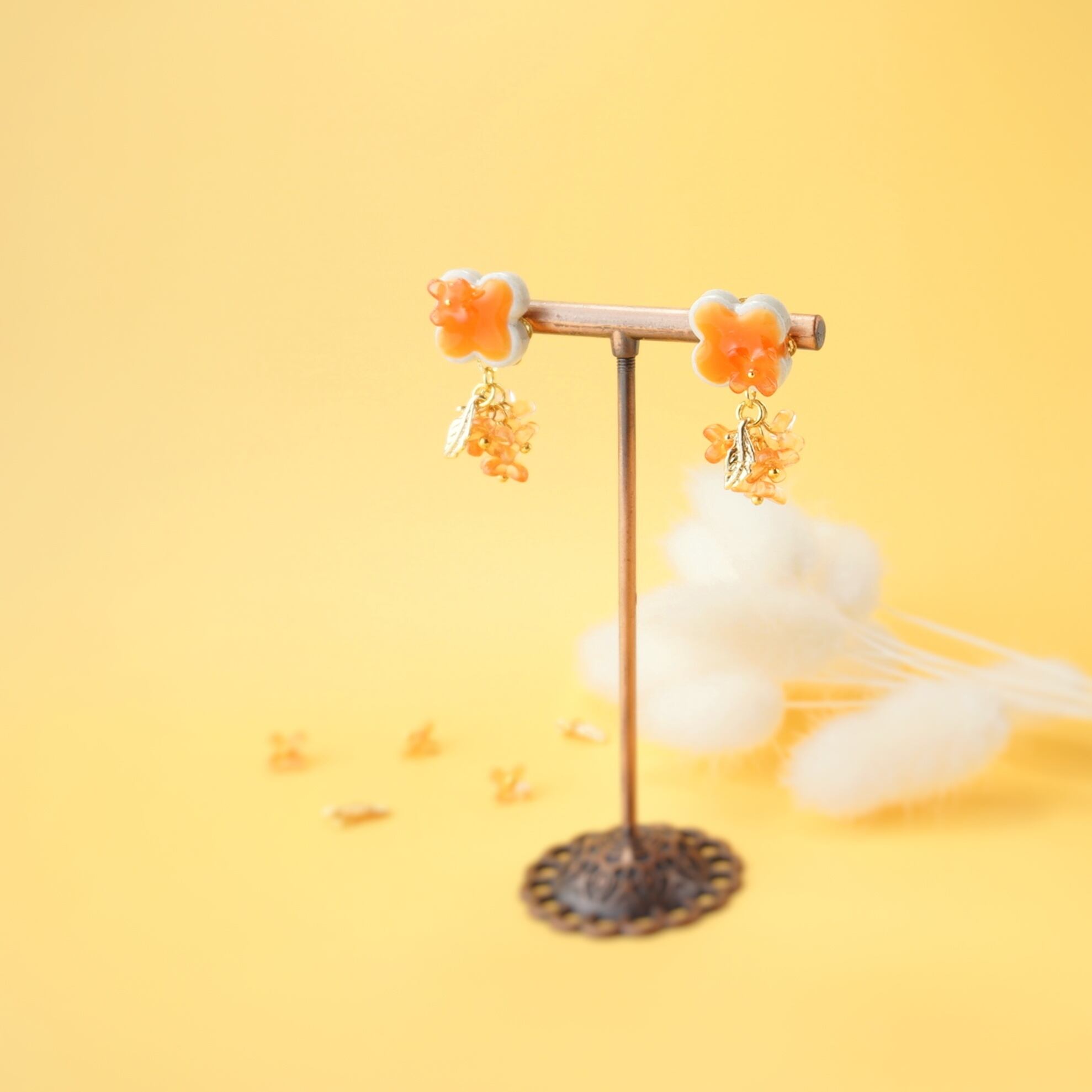 #イヤリング #ギフトボックス #ギフトラッピング #無料ラッピング #オールシーズン #揺れる #金木犀 #オレンジ #プチギフト #秋色 #秋物 #アシンメトリー #こっくり #秋 #陶器 #美濃焼 #レジン