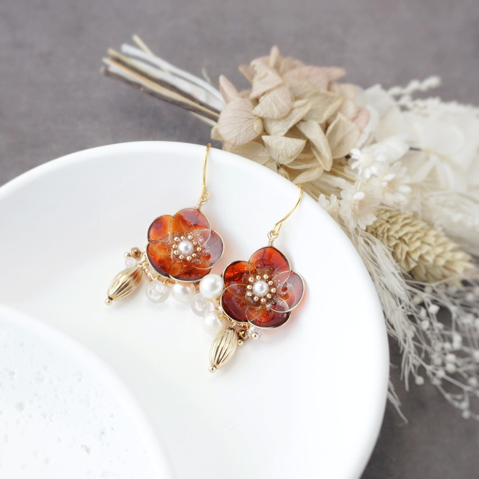 #ギフトラッピング #ギフトボックス #イヤリング #アレルギー対応 #樹脂ノンホールピアス #ノンホールピアス #パーツ変更 #サージカルステンレス #冬 #オールシーズン #椿 #べっ甲 #カメリア #大ぶり #揺れる #ガラスビーズ #成人式 #レジン #ディップフラワー #フラワー #ブラウン #和服 #和装 #着物 #正月 #ラッピング #クリスマス