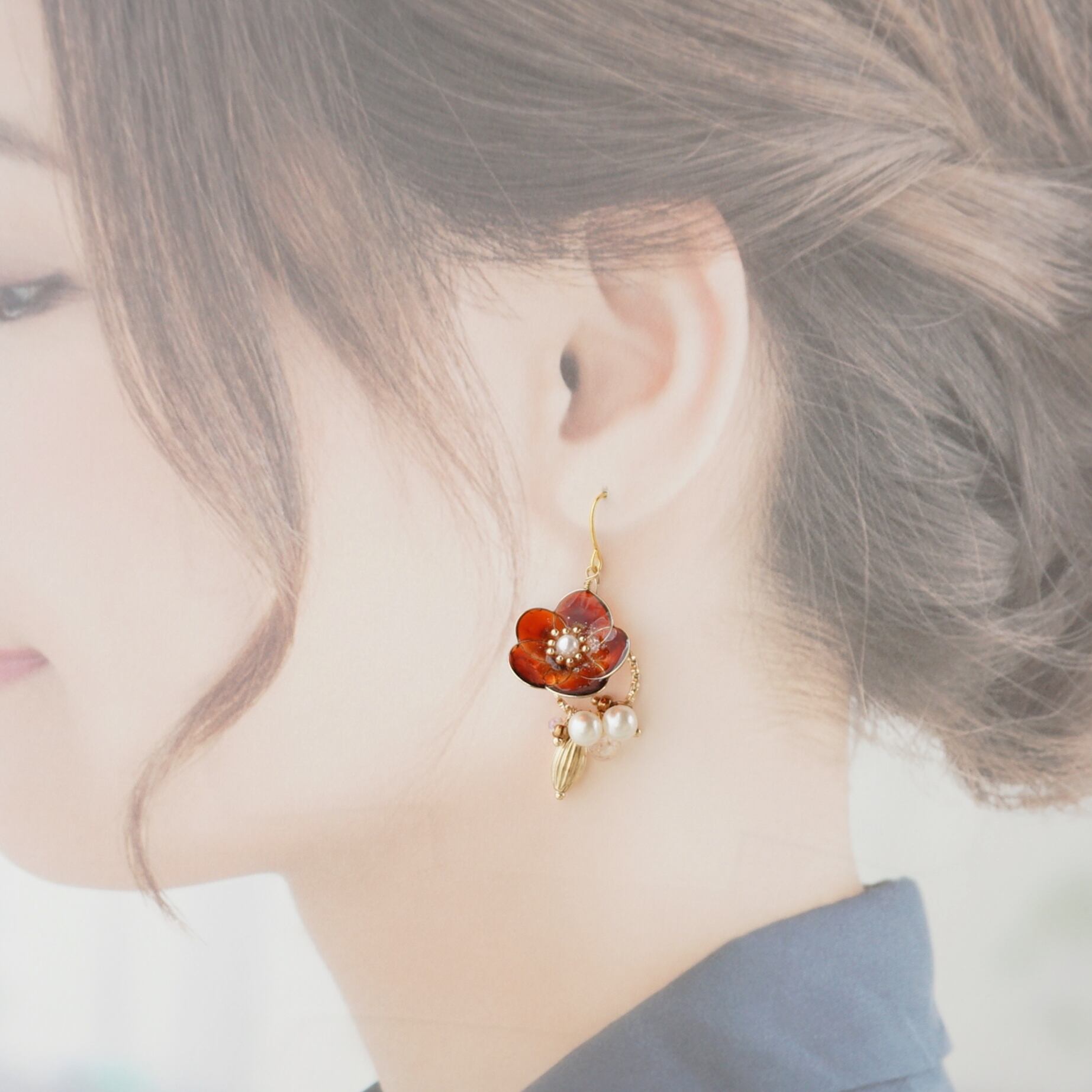 オールシーズン使えるため、季節を問わずお楽しみいただけます。耳元で優雅に揺れるカメリアは、あなたの個性を引き立て、ワンランク上のスタイルを演出します。