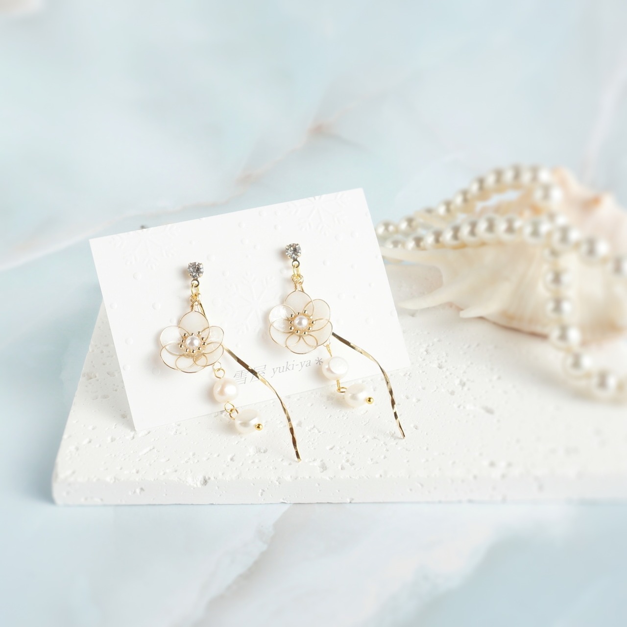 #ギフトラッピング #ギフトボックス #イヤリング #アレルギー対応 #樹脂ノンホールピアス #ノンホールピアス #パーツ変更 #サージカルステンレス #揺れる #ボタニカル #成人式 #レジン #ディップフラワー #フラワー #和服 #和装 #着物 #初詣 #正月 #浴衣 #ラッピング #淡水パール #真珠の花 #ホワイト #フォーマル #卒業式 #入学式